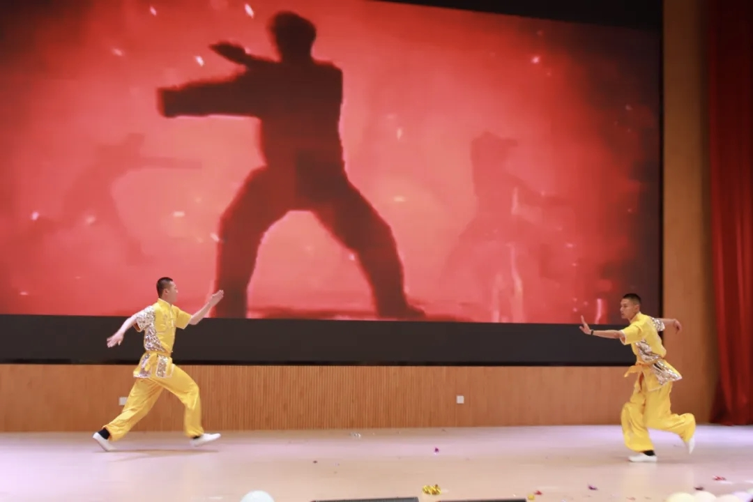 典礼结束后,由学院学生会和大学生艺术团、青春禁毒社联袂打造的迎新晚会精彩上演。晚会融合歌舞、朗诵、武术、器乐、快板等多种形式,深受同学们喜欢,师生携手挥舞荧光棒,将现场气氛推向高潮。