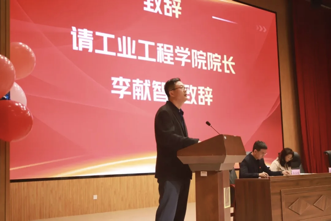 工业工程学院院长李献智老师致辞,他首先代表学院向2025级新生表示热烈欢迎,并回顾了学院在职业本科建设中的里程碑式突破,同时对新生提出希望和要求:一要将安全牢记于心,筑牢成长发展的基石;二要立志成才,明确职业教育的目标导向;三要追求德智体美劳全面发展,实现综合素质的全面提升;四要确保完成学业,履行大学生的基本职责;五要塑造完整人格,奠定幸福人生的根基。他勉励全体新生珍惜校园时光,锤炼专业本领,努力成长为可堪大用的栋梁之材,书写无愧于时代的绚丽篇章。