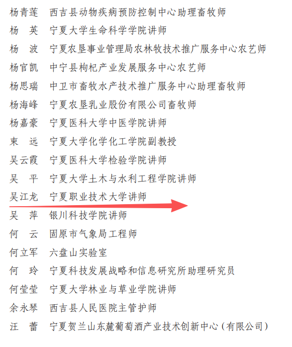 近日,宁夏回族自治区科学技术协会与中共宁夏回族自治区委员会人才工作领导小组办公室联合印发通知,公布2025年度自治区青年科技托举人才培养项目入选人员名单。我院智慧化工绿色低碳安全技术创新团队负责人吴江龙博士成功入选。